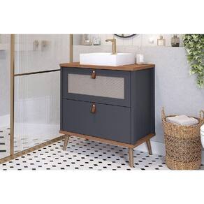 Gabinete de Banheiro Balcão Vêneto 1 Porta e 1 Gaveta c/ Cuba 60cm Titanium/Freijo - MGM