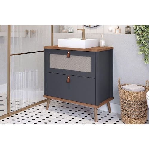 Gabinete de Banheiro Balcão Vêneto 1 Porta e 1 Gaveta c/ Cuba 80cm Titanium/Freijo - MGM