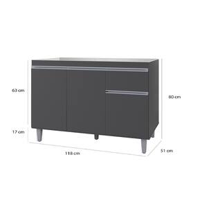 Balcão P/ Pia de Inox 120cm Cinza 3 Portas 1 Gaveta S/ Tampo - Pop