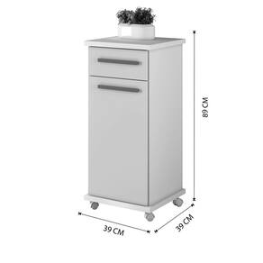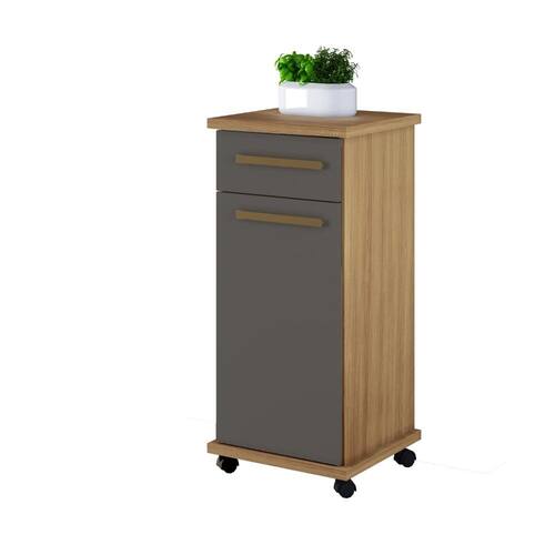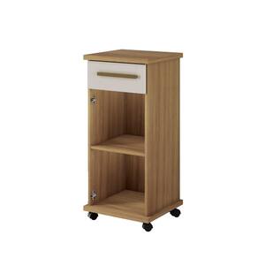 Belíssimo e charmoso balcão Palmas é ótimo pra completar cozinhas e áreas. Ideal para suporte de galão de água, fruteiras e o que a imaginação mandar. Fabricado com material de alta qualidade possui estrutura em MDF com acabamento em pintura U.V. que agrega maior durabilidade e resistência ao móvel.\nEstrutura do Produto Montado: Altura: 88 cm Largura: 39 cm Profundidade: 39 cm Peso: 17 Kg\nGarantia: 3 meses Material da estrutura: MDF 18mm Número de Portas: 01 Número de Gavetas: 01 Número de Prateleiras: 02 Rodizio incluso: Sim.\nObservações: Não oferecemos serviço de montagem, mas todos os produtos possuem manual de montagem com o passo a passo. Recomendamos contratar um profissional de montagem. Pode existir alguma diferença de tonalidade entre a foto e o produto, devido ao tratamento de imagens e à calibração de cores do monitor.