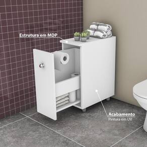 Balcão para Banheiro BCM 116 da Móvel Bento, ótimo para guardar toalhas e papel higiênico. Estrutura em MDP, fornecendo melhor resistência à empenamentos, impactos e maior estabilidade. Acabamento com pintura uv, trazendo beleza e maior resistência ao produto.