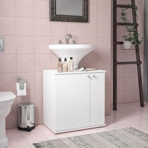 Características: Estrutura MDP Pintura UV 02 Portas com dobradiças metálicas Puxadores de Plástico Peso suportado na Prateleiras: 5kg
