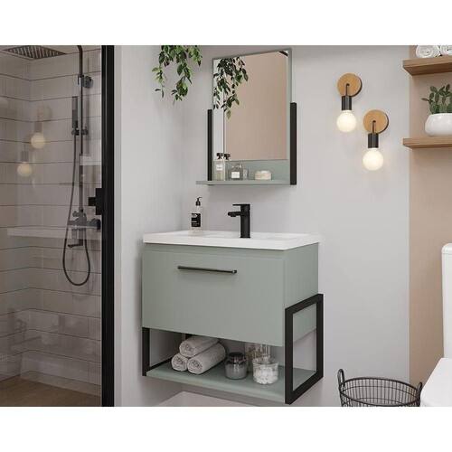 Balcão P/ Banheiro Suspenso Metalo/ipanema C/ Cuba 60cm E Armário C/ Espelho Pistache/freijo - Mgm