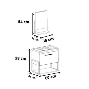 Material de Estrutura - Estrutura 100% MDF - BP Liso - Metalon Tipo de Pintura - Pintura Eletrostática a Pó Tipo de Acabamento da Pintura - Pintura Fosco Vantagens Extra dos Móveis de Banheiro e Lavanderia - Possui Espelho - Sim Material da Cuba - Cuba em Mármore Sintético