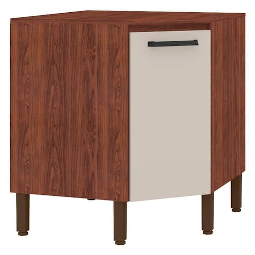 Balcão Para Canto Oblíquo com Tampo Ametista Nogueira Off White - Kits Paraná