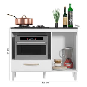 Características:Estrutura em MDPAcabamento em Pintura UVDobradiças Simples de Aço EstampadoPuxadores em PolietilenoCorrediça MetálicaNicho para EletrodomésticoOBJETOS DECORATIVOS NÃO ACOMPANHAM O PRODUTO.Limpar utilizando apenas pano umedecido com água, nunca utilizar abrasivos ou esponjas de aço. Acompanha manual e todos os acessórios para montagem. Recomendamos que a montagem seja feita por um profissional. Garantia de 03 meses para eventuais defeitos de fabricação.Dimensões:Altura: 84 cmLargura: 105 cmProfundidade: 53 cmItens Inclusos:01 BalcãoInformações de Transporte:Peso Total: 60 Kg01 VolumeATENÇÃO, OBSERVAÇÕES IMPORTANTES.As imagens são meramente ilustrativas, não serão enviados objetos de decoração, eletrônicos e demais itens que não estejam especificados nos itens inclusos. É indispensável que seja feita a conferência do produto no ato da entrega e caso haja alguma divergência, seja feito o contato imediato com a loja e notificação no canhoto. Constatando defeito no ato da entrega o produto não deverá ser montado até tratativa com a loja. Não será efetuada a troca do produto após a montagem ter sido efetuada. A montagem é de total responsabilidade do cliente e defeitos na montagem serão tratadas como assistências. Os processos de pendências serão tratados mediante a fotos para analise e conferência da informação. As cores do produto podem variar de acordo com o seu monitor, a iluminação do ambiente em que você está e até mesmo a sua percepção visual. Não nos responsabilizamos, no ato da entrega, por subir escadas e elevadores. Eventuais despesas são de responsabilidade do cliente. Dúvidas serão tratadas via protocolo.
