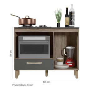 Características: Estrutura em MDP Acabamento em Pintura UV Dobradiças Simples de Aço Estampado Puxadores em Polietileno Corrediça Metálica Nicho para Eletrodoméstico