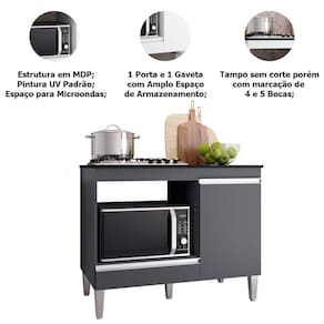 Características do Balcão Para Cooktop 1 Porta 1 Gaveta com Tampo Cátia:
