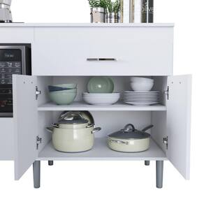 - Ótima Capacidade de Armazenamento: O nicho, as portas e as gavetas proporcionam organização prática e eficiente para utensílios de cozinha.