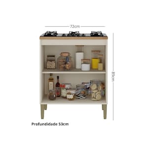 Caracteristicas: Material MDP 2 Portas Dobradicas de metal Puxadores retro Cooktop com marcacao para fogao de 04 bocas Acabamento Pintura UV Prateleira suporta ate 5kg Pes em pvc regulaveis
