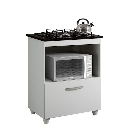 Balcão Para Cooktop 4 Bocas 1 Porta Basculante Espaço Para Micro-ondas Salvia Kaiki Móveis