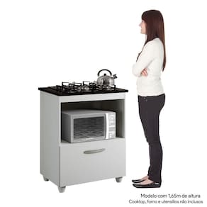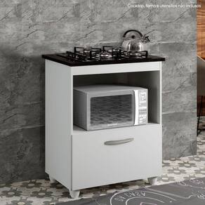 Balcão Para Cooktop 4 Bocas 1 Porta Basculante Espaço Para Micro-ondas Salvia Kaiki Móveis - branco