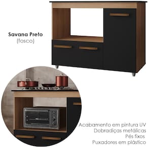 Balcão Com Tampo Para Cooktop 5 Bocas Ana, é ideal para quem busca qualidade e sofisticação para compor sua cozinha da forma que desejar. Estrutura em MDP de 12 e 15 mm, acabamento em pintura UV. Composto por 03 portas articuladas com dobradiças metálicas, puxadores em plástico cromado, tampo com espaço para fogão cooktop de 5 bocas (tampo já recortado 64x35,5 cm), espaço para botijão de gás ou utensílios, nicho com espaço para forno ou microondas, acompanham pés fixos que garantem a firmeza que o móvel precisa. Produzido com controle de qualidade e com excelente acabamento. Este móvel chegará em sua casa separado em 01 volume.