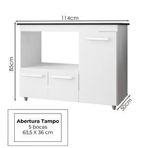 Balcão Com Tampo Para Cooktop 5 Bocas Ana, é ideal para quem busca qualidade e sofisticação para compor sua cozinha da forma que desejar. Estrutura em MDP de 12 e 15 mm, acabamento em pintura UV. Composto por 03 portas articuladas com dobradiças metálicas, puxadores em plástico cromado, tampo com espaço para fogão cooktop de 5 bocas (tampo já recortado 64x35,5 cm), espaço para botijão de gás ou utensílios, nicho com espaço para forno ou microondas, acompanham pés fixos que garantem a firmeza que o móvel precisa. Produzido com controle de qualidade e com excelente acabamento. Este móvel chegará em sua casa separado em 01 volume.