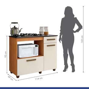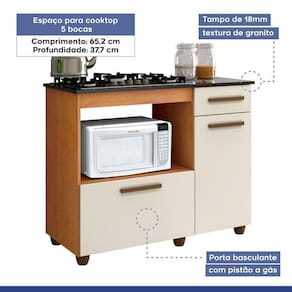 Balcão Para Cooktop 5 Bocas 2 Portas 1 Gaveta Violeta Kaiki Móveis Nature/off White