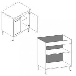 Características: 1 Prateleira 2 Portas 4 Pés reguláveis Dobradiças de metal Estrutura em MDP Puxadores em concha Sistema de montagem parafusos, cavilhas e minifix