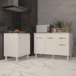 Balcão Para Cooktop 5 Bocas Fran Branco E Armário Aline 118 Cm Cozinha Gabinete Branco Com Tampo Tampão Branco Transforme sua cozinha com este Kit, que une funcionalidade e design! Inclui um balcão Aline de 120 cm com tampo, perfeito para preparo de alimentos e refeições, e um balcão Fran para cooktop de 5 bocas, projetado para instalação segura e organizada. Com materiais de alta durabilidade e acabamento sofisticado, este kit é ideal para quem busca otimizar o espaço com estilo. Modernize sua cozinha com um produto que combina praticidade, qualidade e design! Garanta já o seu e aproveite a comodidade que sua cozinha merece! Características do Balcão:
