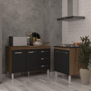 Balcão Para Cooktop 5 Bocas Fran E Armário Bruna 118 Cm Cozinha Gabinete Savana Preto Com Tampo Tampão Savana Transforme sua cozinha com este Kit, que une funcionalidade e design! Inclui um balcão Bruna de 120 cm com tampo, perfeito para preparo de alimentos e refeições, e um balcão Fran para cooktop de 5 bocas, projetado para instalação segura e organizada. Com materiais de alta durabilidade e acabamento sofisticado, este kit é ideal para quem busca otimizar o espaço com estilo. Modernize sua cozinha com um produto que combina praticidade, qualidade e design! Garanta já o seu e aproveite a comodidade que sua cozinha merece! Características do Balcão:
