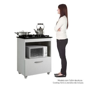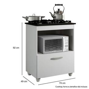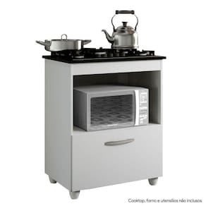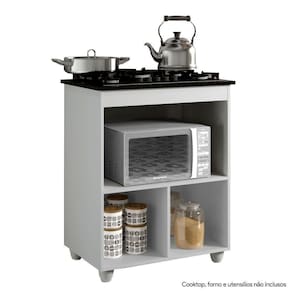 Na hora de preparar as refeições da família, é sempre bom contar com móveis que ajudem a organizar aqueles itens pertinentes à rotina. O Balcão Salvia é uma ótima forma de reforçar paneleiros e armários aéreos já que recebe utensílios gerais, alimentos secos e até frutas no inferior, além de ter apoio para receber um micro-ondas e cooktop.