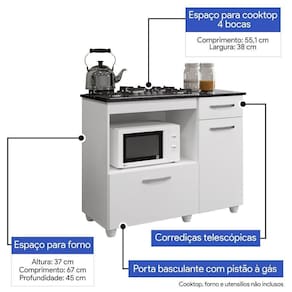 Para a sua cozinha ficar ainda mais completa e organizada, conte com o Balcão Violeta! Com o espaço interno perfeito para guardar seus utensílios domésticos, ele possui 2 portas, espaço para cooktop de 5 bocas e ainda uma prateleira que você pode usar para colocar o micro-ondas. Bom, né? Então aproveite essa maravilha!