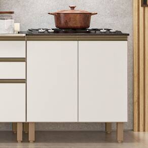 Características do Produto Material da Estrutura: MDF 15 mm. Material do Fundo: MDF 3 mm. Peso Suportado: 21 Kg distribuídos. Acompanha Tampo: Sim. Acabamento: Pintura UV. Escala de Brilho: Fosco. Quantidade de Portas: 2 Portas. Tipo de Porta: Convencional. Material das Dobradiças: Metálicas com amortecedor. Possui Gavetas: Não. Tipo de Puxador: Alumínio. Possui Prateleiras: Sim. Quantidade de Prateleiras: 1 Prateleira. Material dos Pés: PVC. Altura dos Pés: 17cm com regulagem. Diferenciais: - Tampo com recorte para 4 bocas e marcação para 5 bocas. - Dobradiças já com amortecedor. - Puxador perfil de alumínio. Sistema de Montagem: Cavilhas/Parafusos. Manual de Montagem: Sim. Complexidade da Montagem: Média. Volumes: 3 Volumes. Conteúdo da Embalagem: 1 Balcão com tampo. Garantia do Fabricante: 90 dias contra defeito de fabricação. Montagem: Recomendamos que seja feita por um profissional. Recomendação de Limpeza: Utilize pano úmido.
