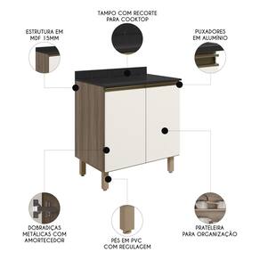 Um Balcão para Cooktop Com Tampo 80cm Maly N03 Carvalho/Off White, da Mpozenato em MDF de 15mm com acabamento em pintura UV representa uma opção elegante e prática para uma Cozinha Moderna.