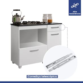 Características: Material da estrutura: MDP Acabamento: Pintura U.V Brilhante Peso máximo que suporta: 70kg Recomendações de manutenção: Limpar com flanela limpa e seca. Não usar produtos abrasivos. Necessita montagem: Sim Número de Porta: 2 Número de Gaveta: 1 Número de Prateleira: 1 Material do puxador: Plástico Material dos Pés: Plástico Altura dos Pés: 6cm Material da corrediça: Metálica Material da dobradiça: Metálica Tipo de porta: Bater e Basculante Possui recorte para Cooktop: Sim Medida do Recorte para Cooktop: 55,1cmx38cm.