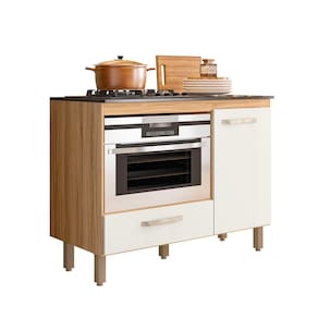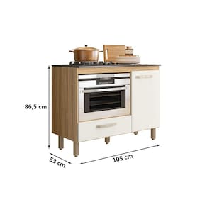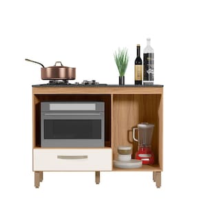 Características: Estrutura em MDP Pintura UV Tampo com recorte para cooktop 04 bocas Nicho para forno elétrico ou micro-ondas 01 Porta com dobradiças metálicas 01 Gaveta com corrediças metálicas Puxadores em Polietileno Pés com regulagem de altura NÃO ACOMPANHA COOKTOP.