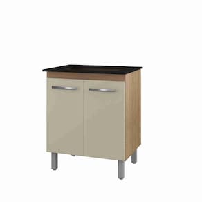 O balcão conta com duas portas que proporcionam amplo espaço de armazenamento, ideal para utensílios e ingredientes. As corrediças em metal asseguram um funcionamento suave e eficiente, tornando o acesso aos seus itens mais prático.
