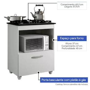 Espaço para forno eletrico: Altura: 37cm Comprimento: 67cm Profundidade: 45cm