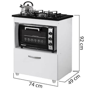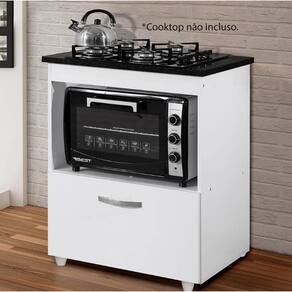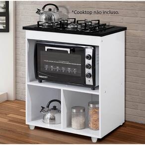 Na hora de preparar as refeições da família, é sempre bom contar com móveis que ajudem a organizar aqueles itens pertinentes à rotina. O Balcão Salvia é uma ótima forma de reforçar paneleiros e armários aéreos já que recebe utensílios gerais, alimentos secos e até frutas no inferior, além de ter apoio para receber um micro-ondas e cooktop. O visual e a cor também são leves e básicos, harmoniza bem com os o restante do mobiliário - tudo pra deixar seu cantinho com uma cara ainda mais convidativa!Especificações do Produto Montado Altura: 92 cmLargura: 74 cmProfundidade: 49 cmPeso: 17,5 kgMedida do Recorte para Cooktop: 65,2 cm x 37,7 cm Material do Puxador: MDFPossui Pés: 04Altura dos pés: 05 cmMaterial dos Pés: PlásticoSuporta Até (kg): 55 kgMaterial Principal: MDPTipo de Porta: BasculanteAcompanha tampo: SimPossui recorte para CookTop: SimNecessita de Montagem? SimComplexidade da Montagem: MédiaRecomendações de Uso, Manutenção e Limpeza: Limpar com flanela limpa e seca. Não usar produtos abrasivos. Observações: