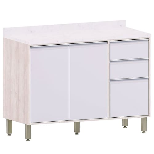 • 1 x Balcão para Cozinha 120 cm 2 Portas 3 Gavetas Atenas