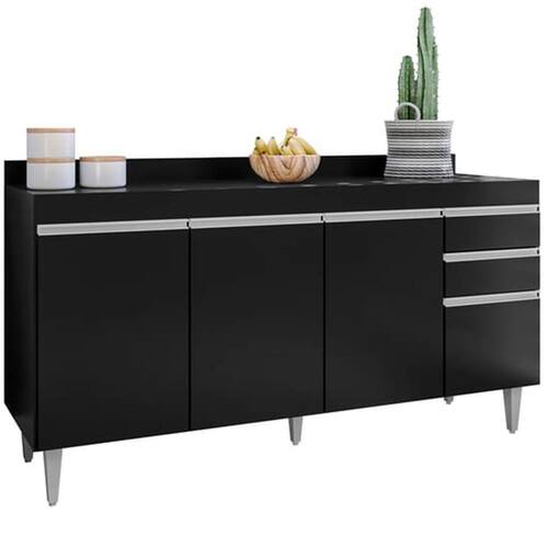 Seu tampo resistente oferece uma superfície prática para apoiar eletrodomésticos, utensílios ou itens decorativos, enquanto as três portas garantem amplo espaço interno para armazenar panelas, mantimentos e acessórios, mantendo tudo sempre em ordem e ao alcance das mãos.