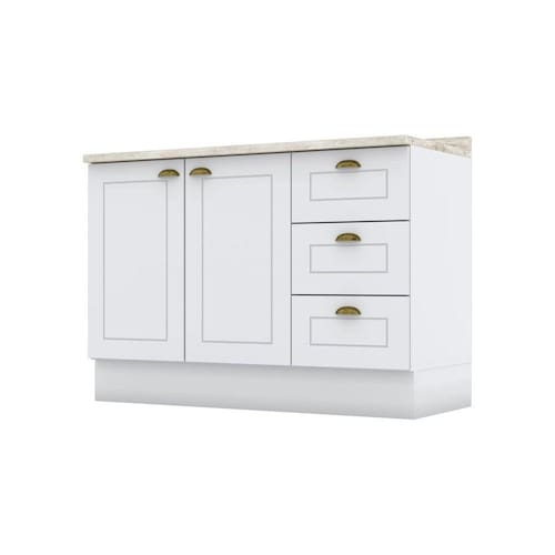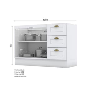 O Balcão 3 Gavetas 2 Portas com Tampo Emily possui detalhes usinados em baixo relevo, puxadores em formato de concha na cor ouro velho, possui dobradiças de 35mm com amortecimento, gavetas com corrediças telescópicas proporcionando maior abertura. Projetado para proporcionar praticidade e funcionalidade ao uso. Este produto foi desenvolvido para atender os mais criteriosos usuários aliando funcionalidade com elegância. Um novo conceito inspirado nas clássicas cozinhas estilo americano, seu design contemporâneo embeleza qualquer ambiente. Suporta Granito: Sim Acabamento da Prateleira: Pintura Texturizada UV Escala de Brilho da Prateleira: Fosco Acabamento da Gaveta: Pintura Texturizada UV Escala de Brilho da Gaveta: Fosco Material do Puxador da Gaveta: Metal Acabamento da Porta: Pintura Texturizada UV Escala de Brilho da Porta: Fosco Material do Puxador da Porta: Metal Produto Montado: Sim Acabamento: Pintura Texturizada UV Acabamento dos Pés: Pintura Acompanha Tampo: Sim Altura dos Pés: 14,5 cm Ambiente Principal: Cozinha Balcão Acompanha Pia: Não Cesto para Frutas: Não codigo_ean: 7909903385531 Complexidade da Montagem: Alta: deve ser montado por um montador especializado Cor: Branco HP/Calcare Cor do Produto: Branco HP/Calcare Cor Flex: Não Cor Interna: Trama Branco Escala de Brilho: Fosco Espessura do Material da Estrutura: 15 mm Gaveta com Chave: Não Informações Complementares: O produto pode ser montado para os dois lados, direito e esquerdo. As portas têm dobradiças de 35mm com amortecimento que garantem um fechamento suave e evitando que elas batam. As gavetas têm corrediças telescópicas, que permitem a abertura total. Itens Inclusos: 1 Balcão, Kit Ferragens e Manual de Montagem Linha ou Coleção: Emily Manual de Montagem e Instalação: https://product-hub-prd.madeiramadeira.com.br/863015/documents/bf4235a4-3f1a-44f8-9e23-b7840a5b1437vetas02portascomtampoemily.pdf Material da Dobradiça/Corrediça da Porta: Metálica Material da Gaveta: MDF Material da Porta: MDF Material da Prateleira: MDF Material do Tampo: MDF Material dos Pés: MDF Medida do Tampo (L x C x E): 120x53,5x2,5cm modular: Sim Montagem Flex: Sim Necessita Montagem: Sim O Balcão Acompanha Pia: Não Origem do Produto: Nacional Pés Reguláveis: Não Peso: 51 kg Peso Máximo por Gaveta: 3 kg Peso Máximo por Prateleira: 8 kg Possui Pés: Rodapé Possui Portas: Sim Possui recorte para Cooktop: Não Recomendações de Uso, Manutenção e Limpeza: Para limpeza de seu móvel, use uma flanela seca ou umedecida. Não utilize produtos químicos que possam danificar o produto. Sapatas Niveladoras: Sim Sistema de Montagem: Parafusos e Cavilhas Suporta Até (kg): 25 kg Tipo de Corrediça da Gaveta: Telescópica Tipo de Dobradiça/Corrediça da Porta: Soft close Tipo de Porta: Bater Tipo de Puxador da Gaveta: Externo Tipo de Puxador da Porta: Externo Ean: 7909903385531