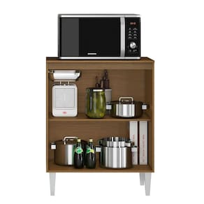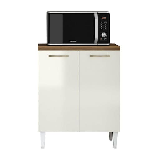 Característica do Balcão para Cozinha 70cm 2 Portas Halena: - Estrutura em MDP; - 2 Portas com dobradiças metálicas; - Puxadores de Plástico; - Acabamento em verniz texturizado; - Não acompanha objetos decorativos; - Montagem por conta do comprador;