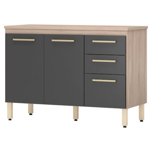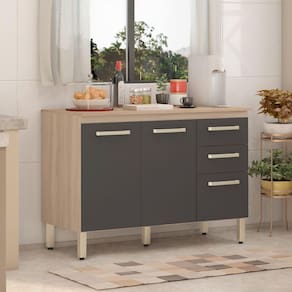 Balcão Para Cozinha Com Tampo 3 Portas e 2 Gavetas Miss Avena Grafito Demóbile