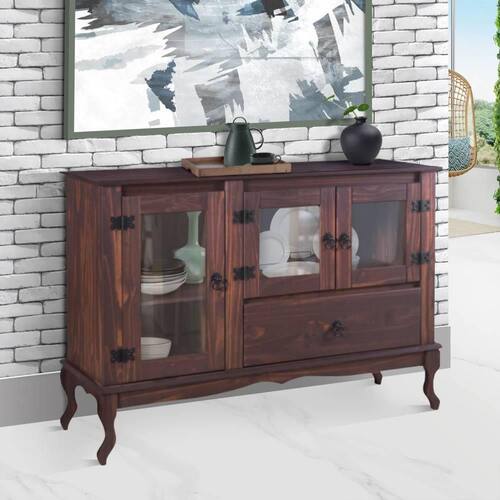 O balcão rústico da marca Shop JM, é uma excelente escolha para você que está buscando seu primeiro móvel rústico, trata-se de um produto de extrema qualidade, fabricado com matéria prima em madeira maciça. É feito à moda antiga, fabricado artesanalmente. É um modelo ideal para: Balcão Para Sala de Jantar, Balcão Para Sala de Estar. Seu acabamento é na cor Imbuia com pintura fosca envernizada, puxadores em metal, 1 gaveta e 3 portas. Valorize seu ambiente com um móvel rústico.