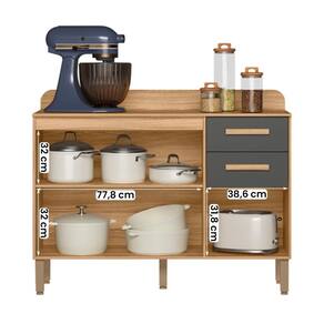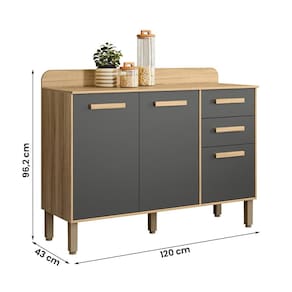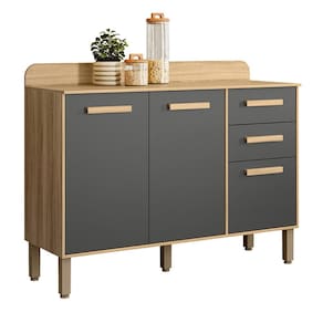 Balcão para Cozinha Maria Flor com 3 Portas e 2 Gavetas - Cinza
