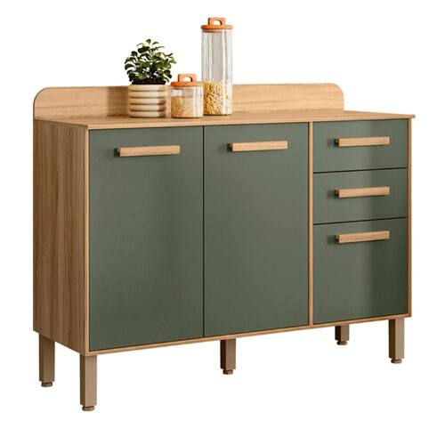 Modelo: Balcão Maria Flor; Material: MDP em 12 mm e 15 mm; Dimensões: 120 cm(L) x 94,6 cm(A) x 43 cm(P); Quantidade de portas: 03 (dobradiças metálicas); Quantidade de gavetas: 02 (corrediças metálicas); Medidas internas das gavetas: 33,5 cm(L) x 33,5 cm(P) x 10 cm(A); Com puxador: Sim, em MDF; Quantidade prateleiras: 01, interna; Pés: Sim, em plástico com regulagem; Peso suportado: até 21 kg distribuídos; Requer montagem: Sim (kit montagem incluso);