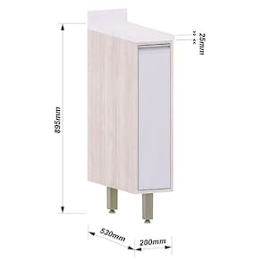 MDPO Balcão para Cozinha Pequeno com 1 Porta da linha Atenas é a solução perfeita para otimizar espaços com elegância e funcionalidade. Com 89,5 cm de altura, 20 cm de largura e 53 cm de profundidade, é ideal para cozinhas moduladas, encaixando-se facilmente em locais reduzidos. Fabricado em MDP de 15 mm, conta com acabamento sofisticado em Patina FF com impressão frontal BP, além de uma porta com dobradiças metálicas de 35 mm com amortecimento, que proporciona fechamento suave. A prateleira interna auxilia na organização, enquanto o puxador gola em alumínio prata anodizado adiciona um toque moderno ao design compacto e prático do móvel.