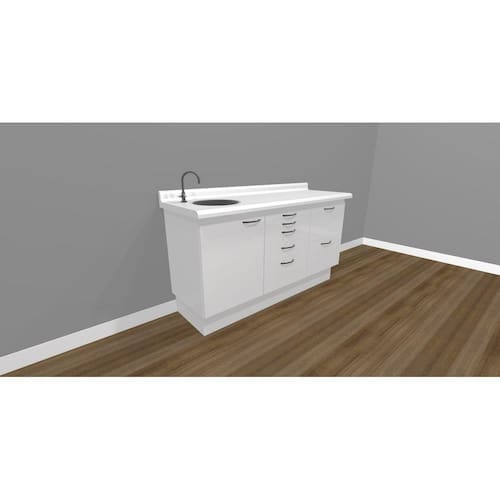 - Tampo com revestimento malamínico, sem emendas entre tampo e rodopia, ideal para assepsia