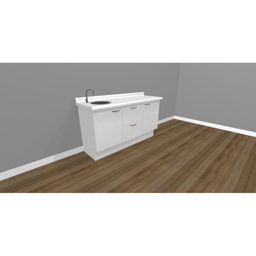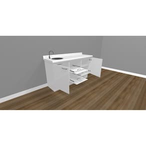 - Tampo com revestimento melamínico, sem emendas entre tampo e rodopia, ideal para assepsia