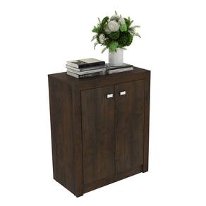 balcão para escritório é graças às 2 portas de dobradiças metálicas e puxadores em PVC, com prateleira interna oferecendo amplo espaço para guardar seus materiais. Inclusive, possui design contemporâneo que além de contribuir para a organização, também complementa na decoração do ambiente.
