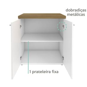 - Não nos responsabilizamos pela montagem dos produtos. Todos os produtos acompanham acessórios para que sejam montados. - Não nos responsabilizamos, no ato da , por subir escadas/elevadores ou por guincho em apartamentos. Eventuais despesas são de responsabilidade do comprador; - Confira as dimensões deste produto e certifique-se de que passará normalmente por supostos elevadores, portas, escadas e/ou corredores de sua residência; - Não aceitamos de produtos com caixas violadas ou materiais danificados, confira a quantidade de volumes e se o que está sendo entregue corresponde com a mercadoria adquirida, não aceitamos após o prazo de arrependimento de 7 dias corridos. Características Gerais do Produto: - Altura: 75 cm - Gavetas: Não Possui Gavetas - Ideal para: Escritórios - Informações Adicionais: Não Acompanha Objetos Decorativos; - Largura: 70 cm - Material: MDP - Pintura: 1 Prateleira Interna Fixa; Sapatas Plásticas; - Portas: 2 Portas - Profundidade: 50 cm - Tipo de Porta: Porta de Bater - Acabamento: Acabamento BP - Informações Adicionais: - Não nos responsabilizamos pela montagem dos produtos. Todos os produtos acompanham acessórios para que sejam montados. - Não nos responsabilizamos, no ato da , por subir escadas/elevadores ou por guincho em apartamentos. Eventuais despesas são de responsabilidade do comprador; - Confira as dimensões deste produto e certifique-se de que passará normalmente por supostos elevadores, portas, escadas e/ou corredores de sua residência; - Não aceitamos de produtos com caixas violadas ou materiais danificados, confira a quantidade de volumes e se o que está sendo entregue corresponde com a mercadoria adquirida, não aceitamos após o prazo de arrependimento de 7 dias corridos.