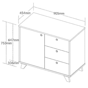 Dimensões do Balcão para Escritório 3 Gavetas 1 Porta Luciano: