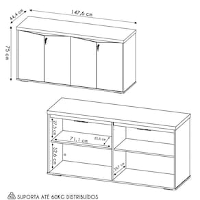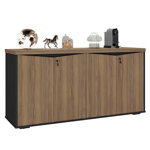 O Balcão para Escritório com Chave 148cm Corp A06 Nogal/Preto, da Mpozenato, é a escolha perfeita para quem busca unir organização e elegância no escritório ou home office.