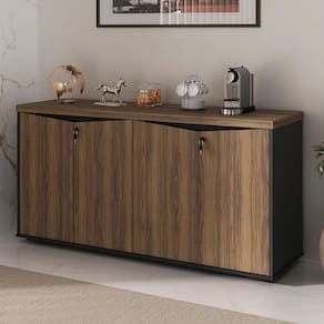 Com um design contemporâneo e sofisticado, esse balcão 4 portas não só embeleza o espaço corporativo, como também oferece amplo armazenamento para todos os itens indispensáveis. As quatro portas garantem fácil acesso a livros, documentos e materiais do dia a dia, enquanto o sistema de travamento com chaves assegura a proteção dos seus pertences e tudo com a organização que você precisa. Além disso, o tampo em Tamburato pode ser aproveitado tanto para expor objetos decorativos, como também reservar um espaço para o cantinho do café. Afinal, todos merecem uma pausa.