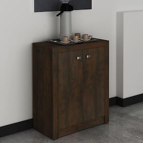 Kit 2 Peças Armário Escritório com 2 Portas com Chave, Balcão para Escritório com Chave e 2 Portas Amêndoa/Preto