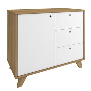 Kit 2 Peças com Balcão de Atendimento Tamburato em L para Escritório - Elegante e Funcional Carvalho/Branco