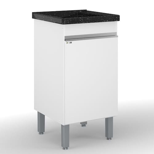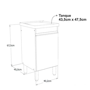 Balcao para Lavanderia 1 Porta 40,2cm com Tanque Amelia AJ Rorato O Balcao para Lavanderia Amelia AJ Rorato 40,2cm com 1 porta e uma solucao pratica e moderna para otimizar o espaco da sua lavanderia. Ele foi pensado para acomodar tanque simples e se adapta muito bem tanto a ambientes compactos quanto a espacos maiores, alem de oferecer um local funcional para armazenar produtos e itens de limpeza proximos ao tanque. Sua estrutura e produzida em BP com revestimento em lamina melaminica texturizada, acabamento com bordas em fita PVC e travessas em madeira, estrutura em pinus de reflorestamento tratado em estufas de alta temperatura e revestimento em HDF nos dois lados. Ja o tanque em marmore sintetico possui espessuras reforcadas e cobertura granitada em gel coat, garantindo brilho intenso e excelente resistencia.